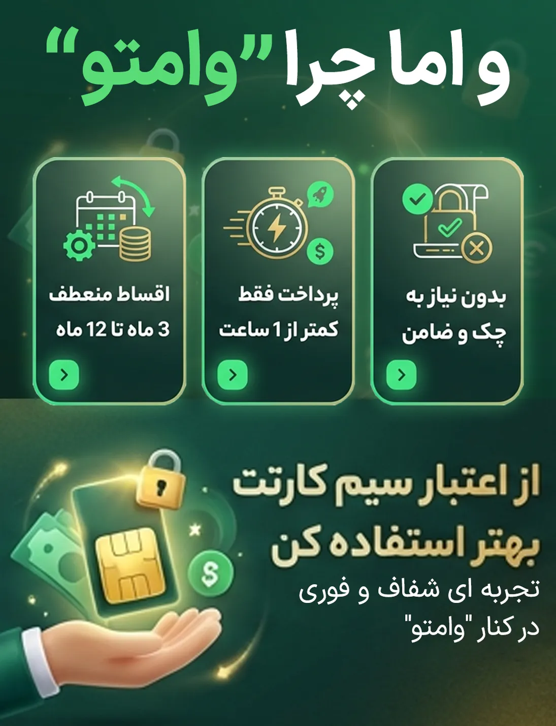 از خدمات وام‌دهی وامتو استفاده کنید درحالی‌که همچنان مالکیت سیم‌کارت برای شما است و سیم کارت به نام شما است. پس همین حالا اقدام کنید.